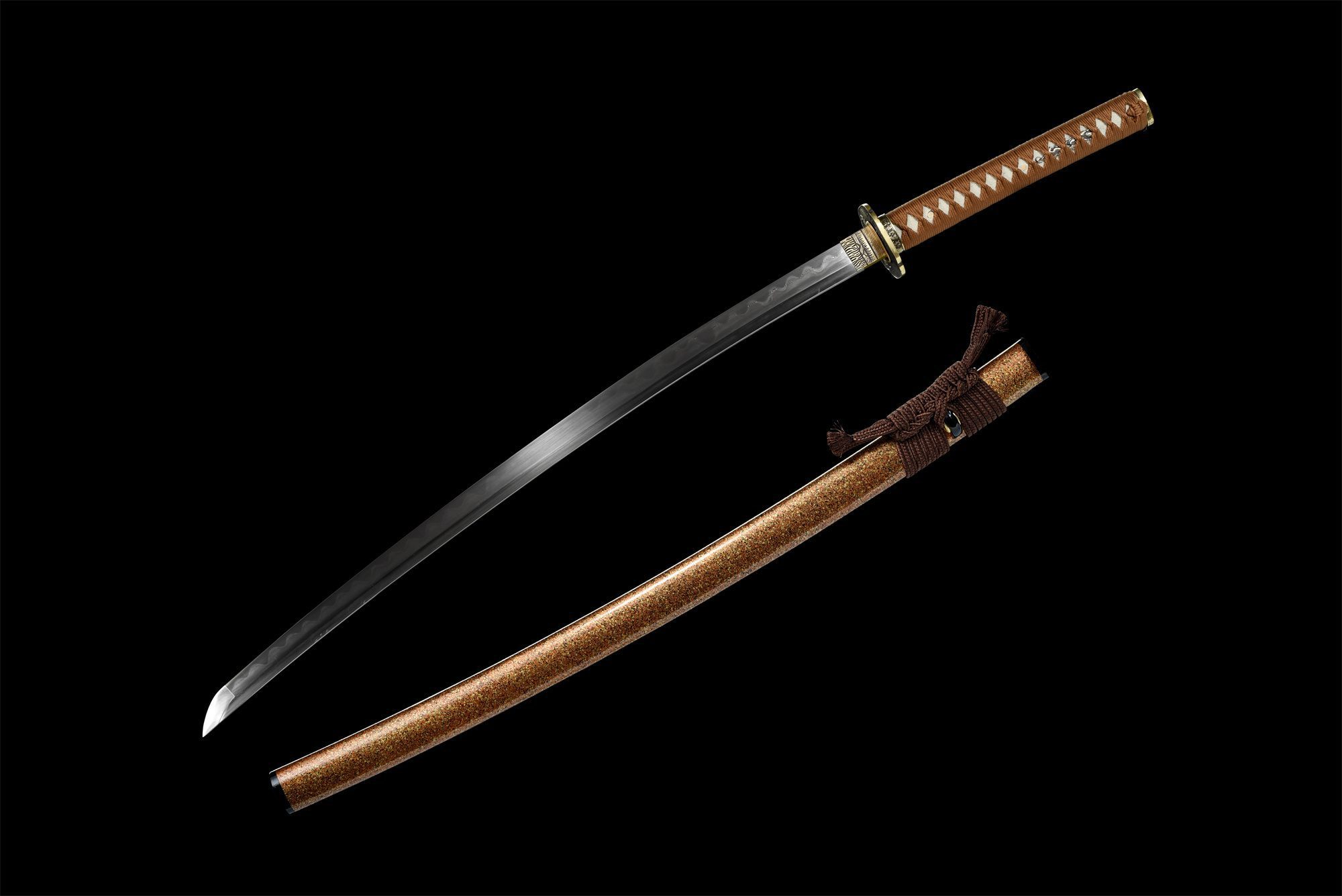 Dieses Katana-Schwert vereint Funktionalität und Ästhetik in bemerkenswerter Ausgewogenheit und bietet einen komfortablen Griff und präzises Schneiden. Der gehämmerte Messing-Habaki sorgt für einen perfekten Sitz in der Schwertscheide und garantiert die Sicherheit und Langlebigkeit des Ganzen. Dieses Schwert ist eine ausgezeichnete Investition für Sammler und Praktiker gleichermaßen und verkörpert die Essenz traditioneller japanischer Handwerkskunst und die Poesie der japanischen Jahreszeiten.