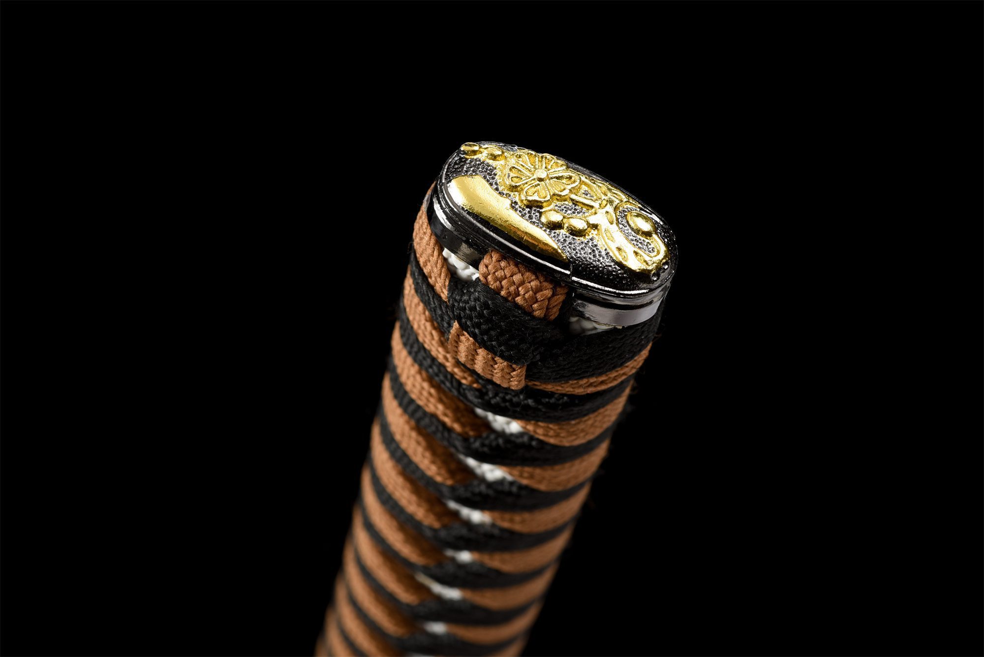 - Habaki (鎺): Vergoldetes und schwarzes, ausgehöhltes Messing.