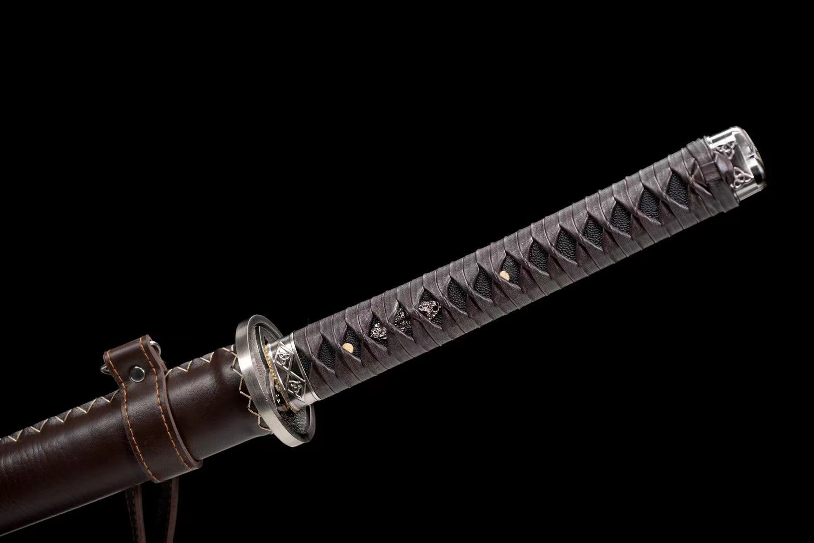 - Schwertscheide (Saya 鞘): Braune Lederscheide mit passendem Kojiri und Koiguchi.